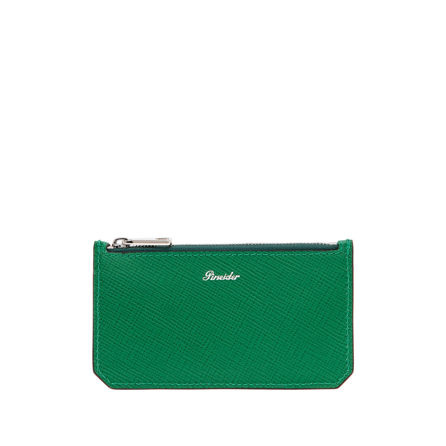 Porta Carte con zip in pregiata pelle di vitello stampa saffiano. Ideale per tenere in ordine le carte di credito e con pratica zip per monete e banconote. Il logo Pineider firma l’accessorio. Un oggetto indispensabile da avere sempre con sè. Made in Italy.