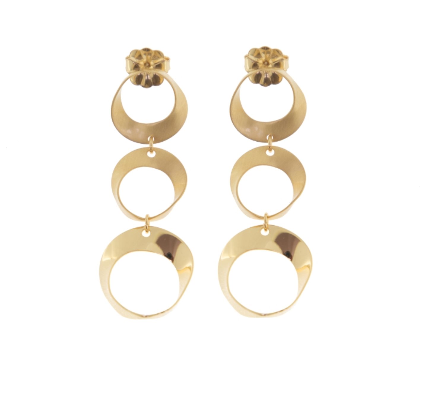Orecchini pendenti a due elementi, spazzolati e lucidi in AG 925‰ placcato oro giallo 23 ct. argento 925‰