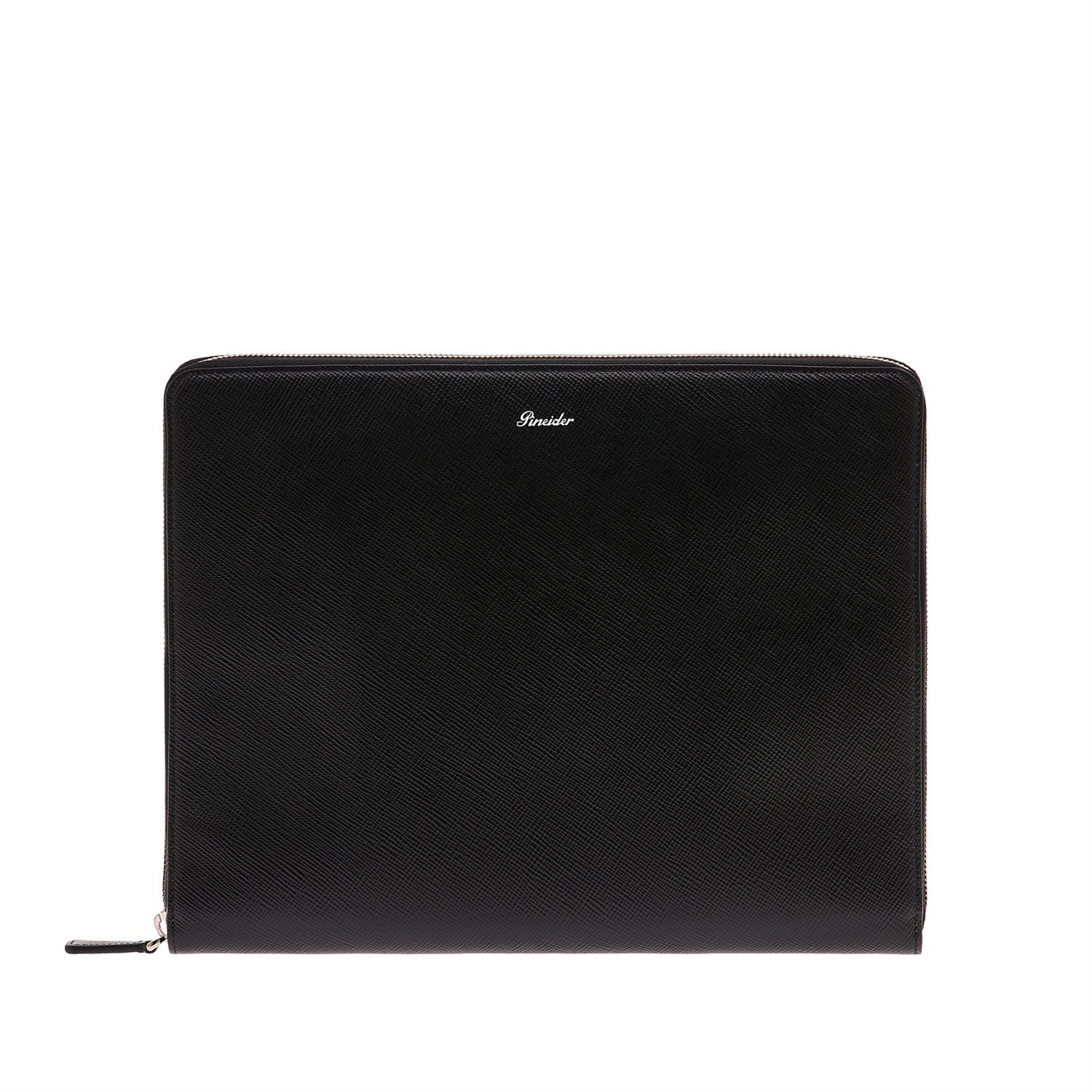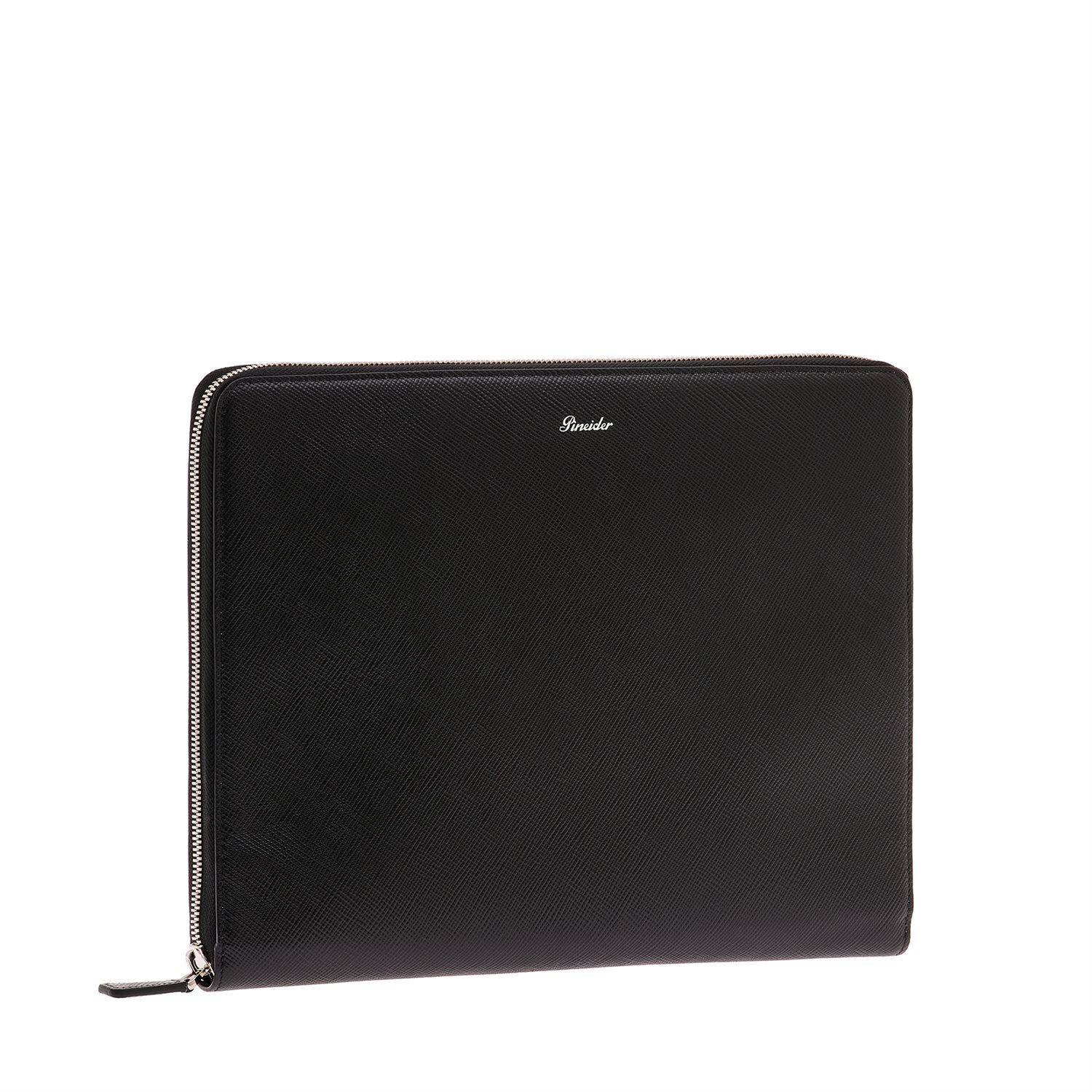 Porta iPad in pregiata pelle di vitello stampa saffiano. Dotato di una pratica cerniera, all’interno è progettato per contenere un iPad e dispone di un portablocco, portabiglietti da visita e 2 tasche per accessori, per avere tutto a portata di mano. Il logo Pineider completa l’accessorio. È il compagno ideale per i professionisti moderni, che combina funzionalità e stile in un unico prodotto. Made in Italy.