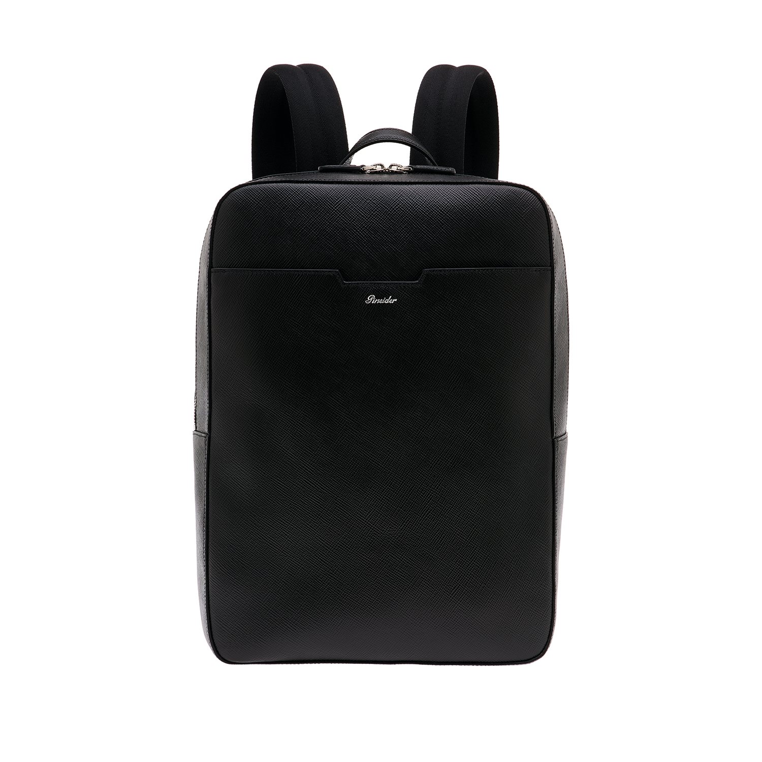 Zaino slim in pelle di vitello nero stampa saffiano, firmato Pineider, caratterizzato da un design elegante e raffinato. Presenta una finitura di alta qualità, con dettagli curati e una struttura funzionale che include scomparti interni organizzati per dispositivi tecnologici e altri oggetti essenziali. Le cerniere e gli accessori in metallo aggiungono un tocco di classe, mentre gli spallacci regolabili assicurano comfort durante l’uso quotidiano. Ideale per chi cerca uno stile sofisticato e pratico.