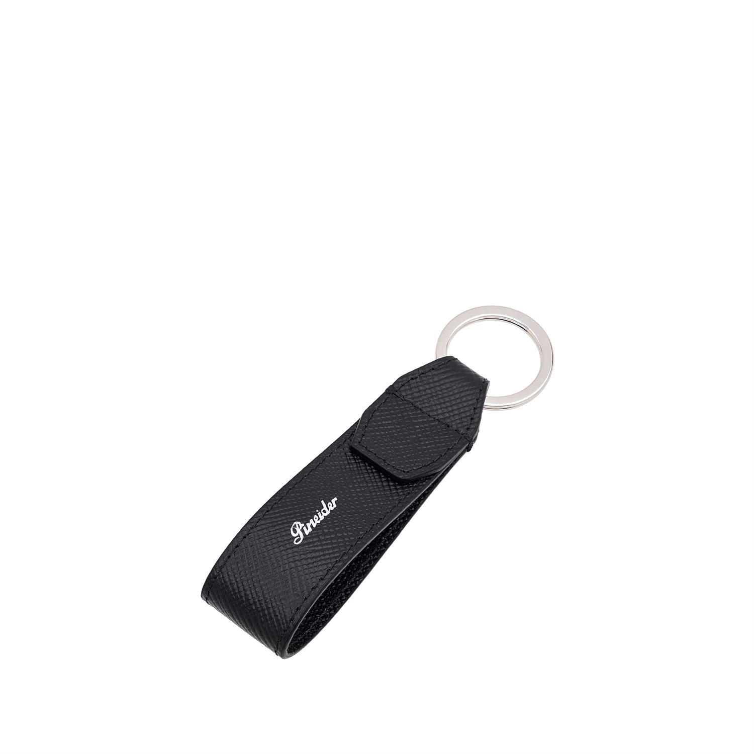 Portachiavi Pineider, realizzato in pelle di vitello stampa saffiano. Questo portachiavi in vera pelle Made in Italy è l’idea regalo perfetta per l’uomo elegante che non trascura alcun dettaglio del suo stile. Lunghezza Totale 12 cm.