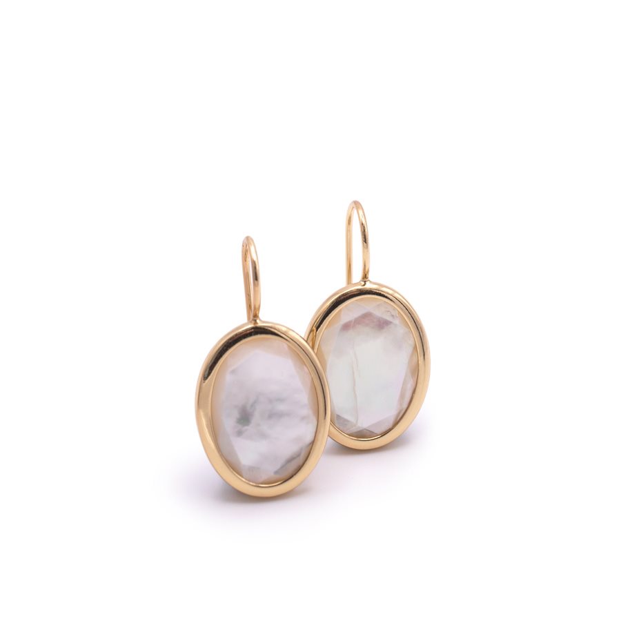 Orecchini ovali a monachella in madreperla 15x20mm in argento 925‰ placcato oro giallo 23kt.