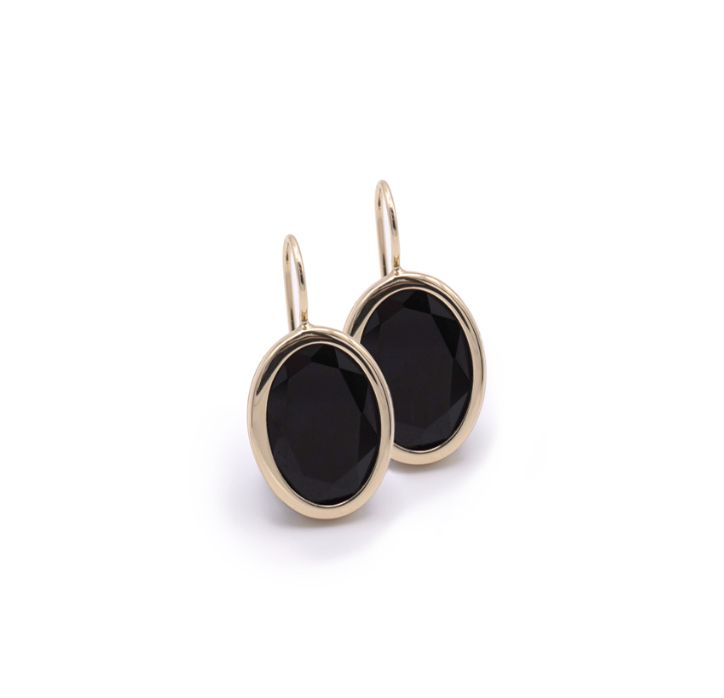Orecchini ovali a monachella neri 15x20mm in argento 925‰ placcato oro giallo 23kt.